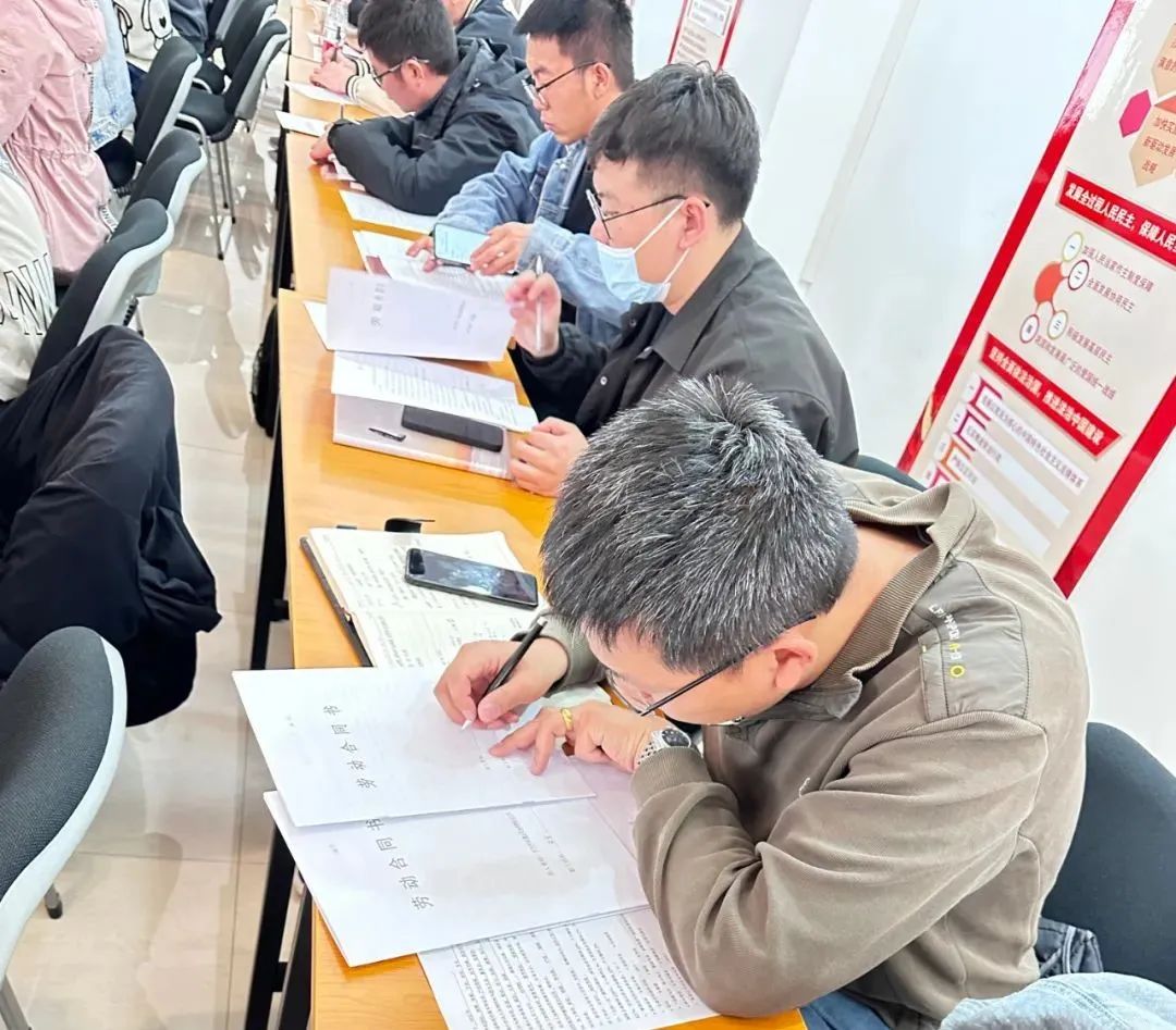 培訓(xùn)會(huì)后,公司圍繞培訓(xùn)內(nèi)容對(duì)新員工進(jìn)行綜合測(cè)試,并與新入職員工統(tǒng)一簽訂勞動(dòng)合同。