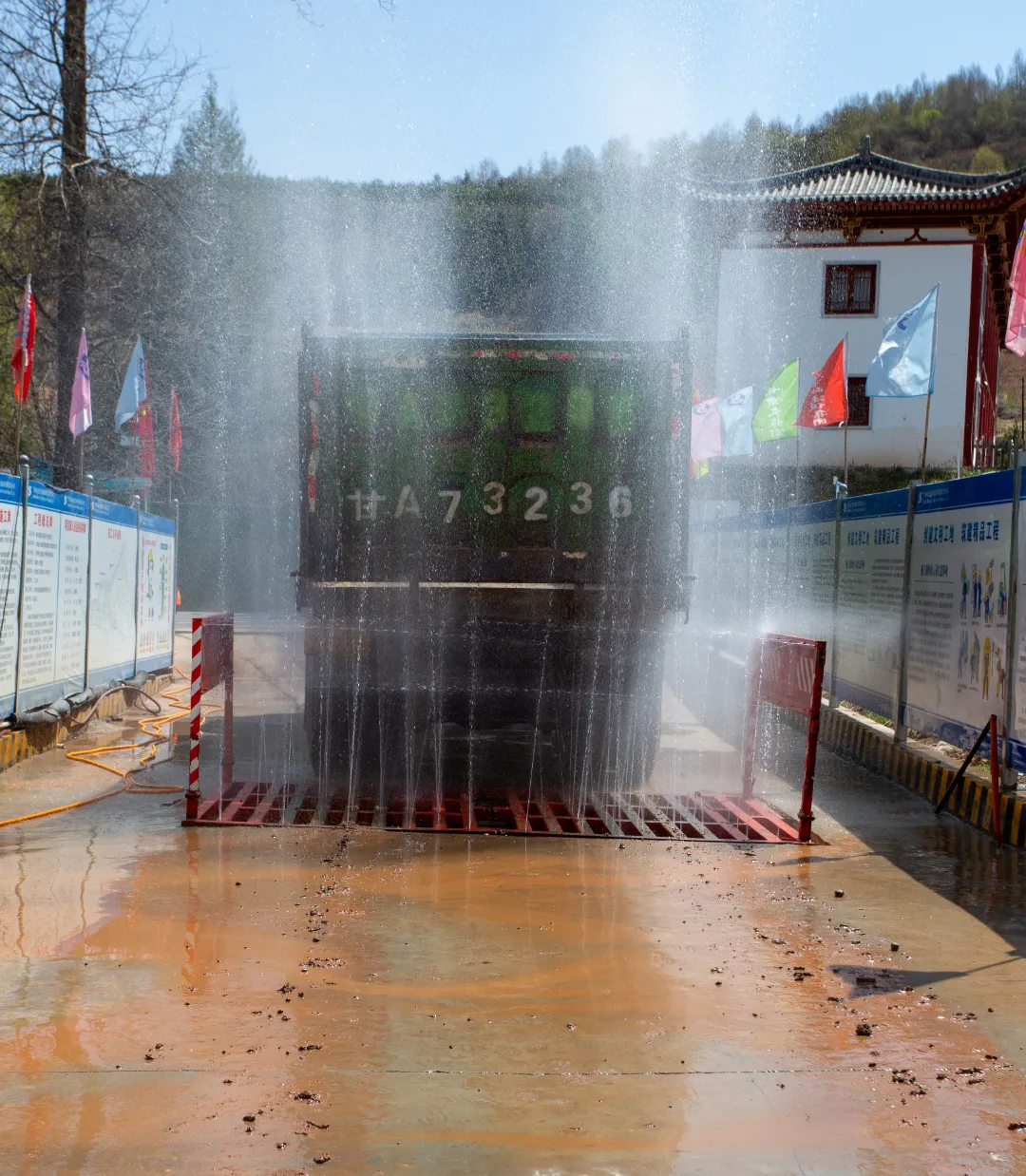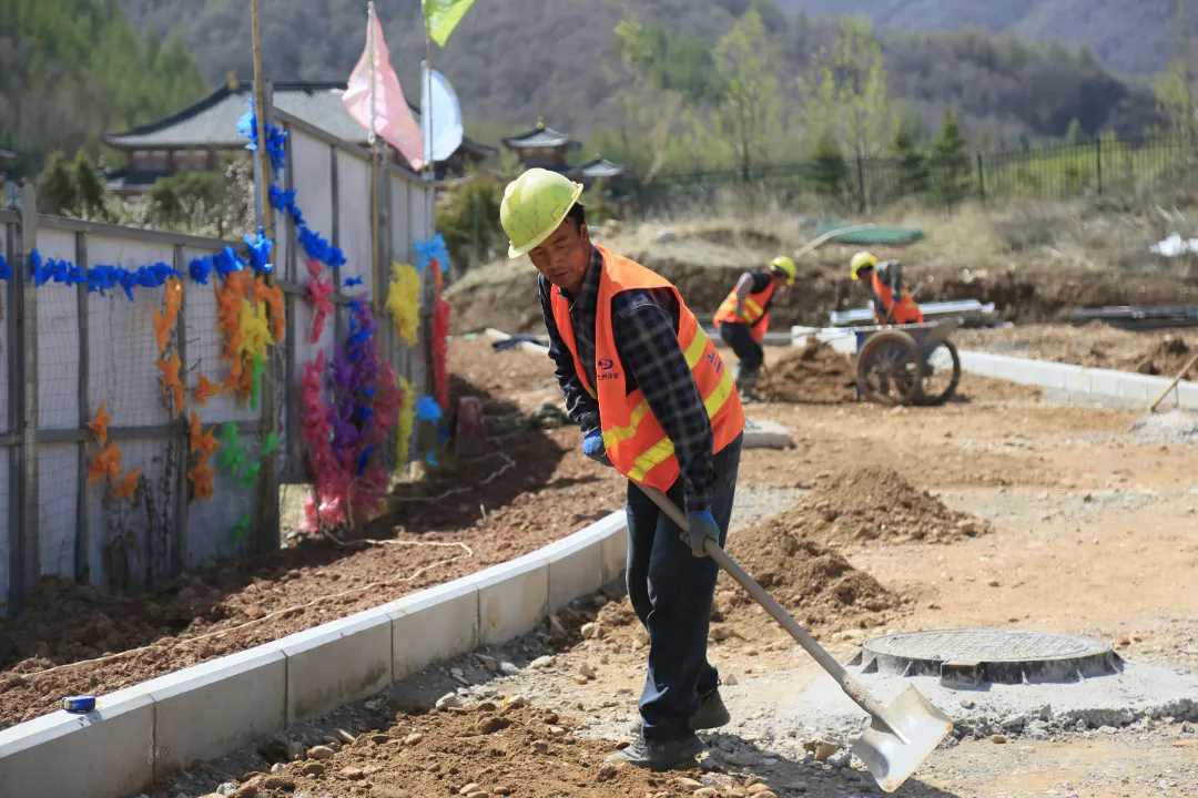五一期間主要進(jìn)行A區(qū)消防車(chē)道路基基礎(chǔ)及人行步道混凝土澆筑壓花;B區(qū)1#酒店渭水山莊主體施工、戶外單體墻體砌筑及屋面施工;C區(qū)消防車(chē)道路基基礎(chǔ)及停車(chē)場(chǎng)基礎(chǔ)施工等。