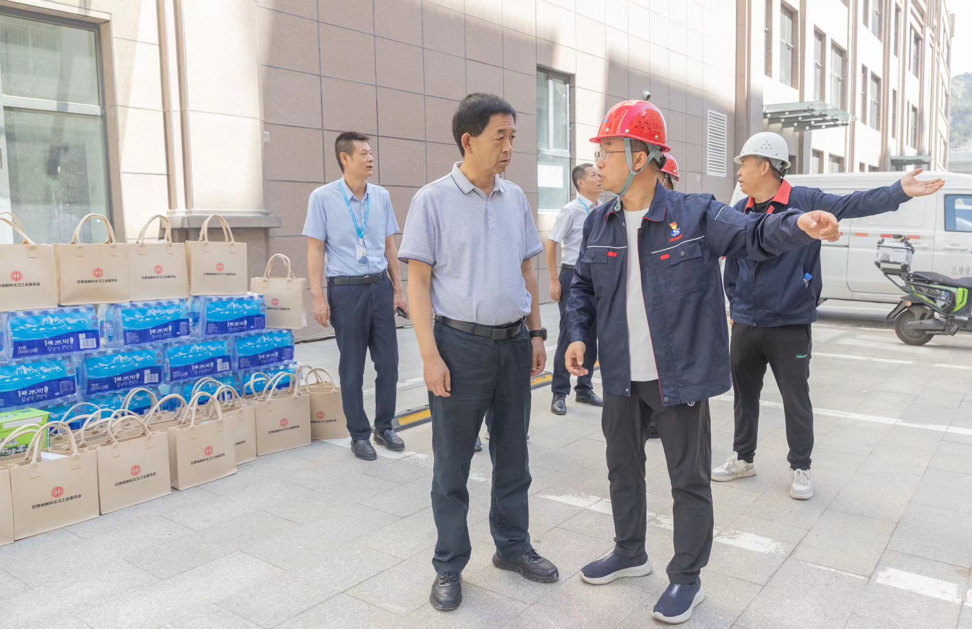 近期,蘭州氣溫節(jié)節(jié)攀升,各在建項目部員工冒酷暑,戰(zhàn)高溫,搶進度,保產(chǎn)值,堅守在施工一線,掀起百日攻堅戰(zhàn)大干熱潮。為保障員工的身體健康,確保全身心投入到安全生產(chǎn)工作中,8月12日上午,甘肅文旅集團黨委副書記、工會主席王寧一行分別赴蘭州市五泉下廣場提升改造項目和蘭州市城區(qū)(城關(guān)區(qū)、七里河區(qū))雨污水管道分流工程鹼溝洪道雨污水收集項目施工現(xiàn)場,開展“夏日送清涼”慰問活動,并檢查指導(dǎo)安全生產(chǎn)工作。